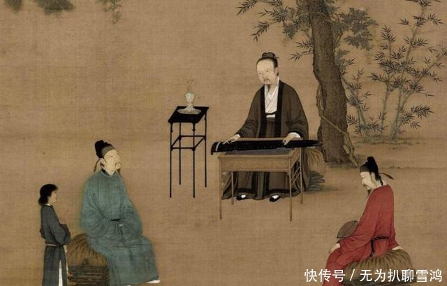 抚琴图,抚琴者为宋徽宗,红衣者为蔡京